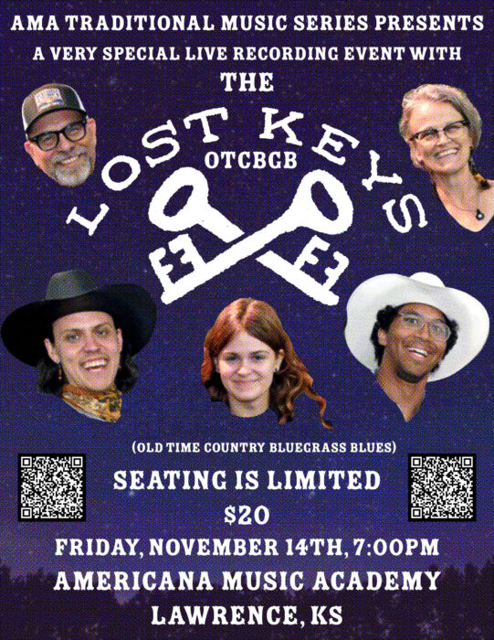 HEY THERE! Are you a high school or college student? Or maybe the AMA Traditional Music Series is outside of your current budget but you love old-time music. If so, message Howard Rains at soapycows@gmail.com and we’ll work something out. We want to encourage an interest in traditional music in Lawrence, KS! We want to encourage YOU!